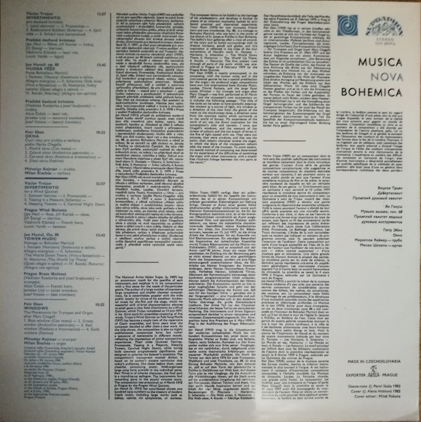 Václav Trojan: Musica Nova Bohenica - Divertimento / Hudba Věže / Okna (Supraphon, 1983)