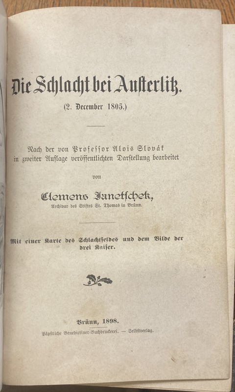 Janetschek, Clemens d’Elpidio: Die Schlacht bei Austerlitz BITVA SLAVKOV KNIHA MAPA, 1898