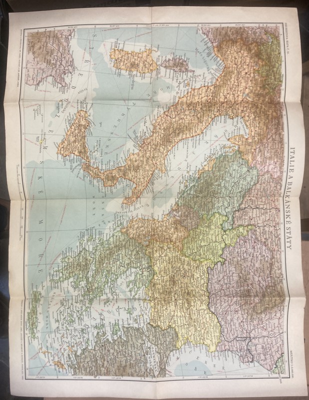 Kuchař, Karel: ITALIE BALKÁNSKE STÁTY BALKÁN 2 SV. VÁLKA MAPA 1:3,000.000, 1943
