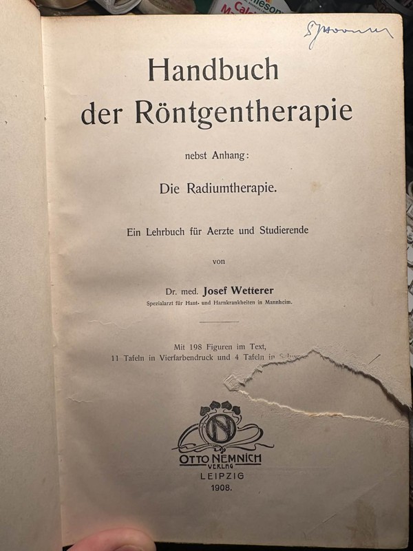 Wetterer, Josef: Handbuch der Röntgentherapie RTG, 1908